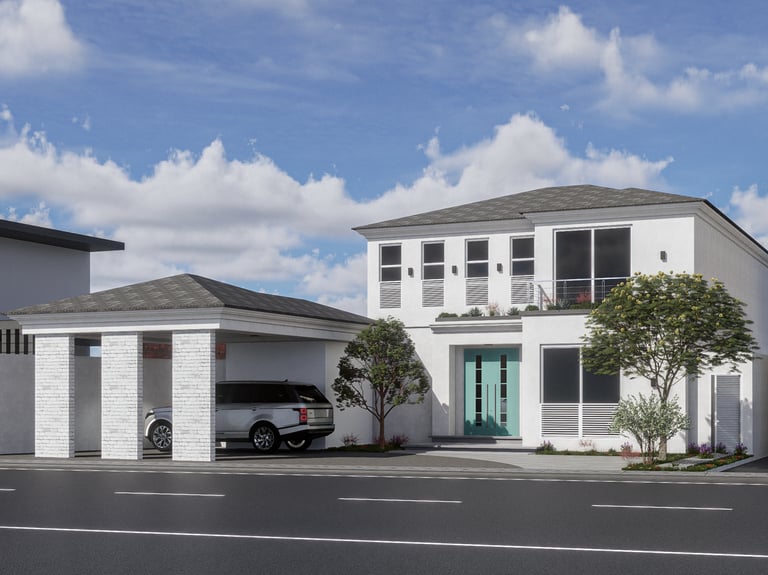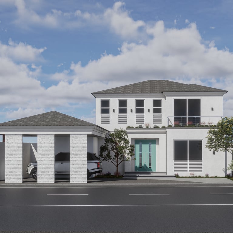 Vivienda unifamiliar de dos niveles desarrollada a partir de un diseño personalizado para el cliente. La propuesta arquitectónica adopta un lenguaje contemporáneo, con una composición volumétrica clara y una distribución pensada para el uso cotidiano y el confort.