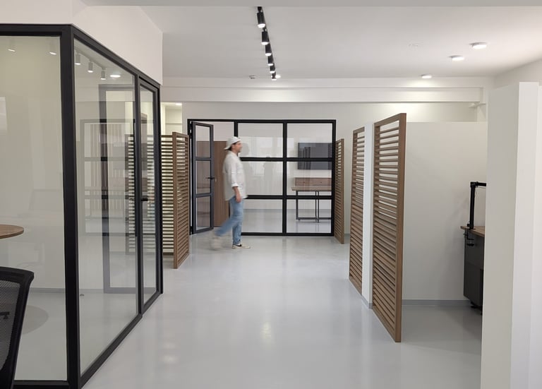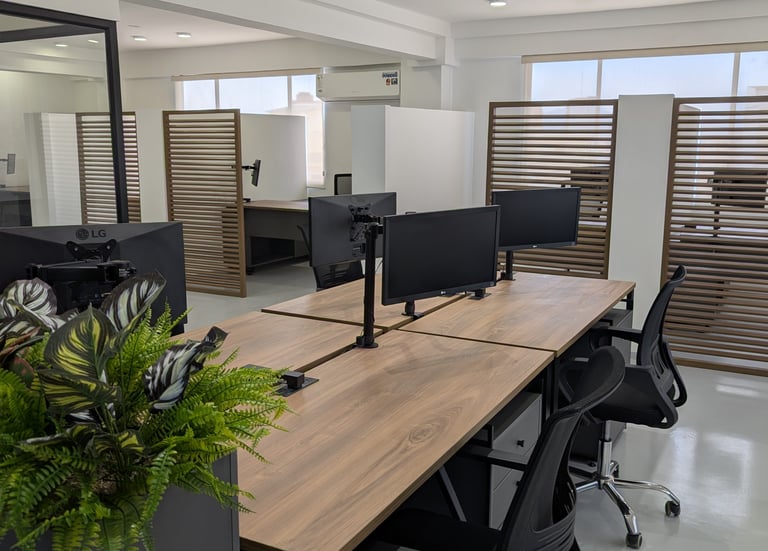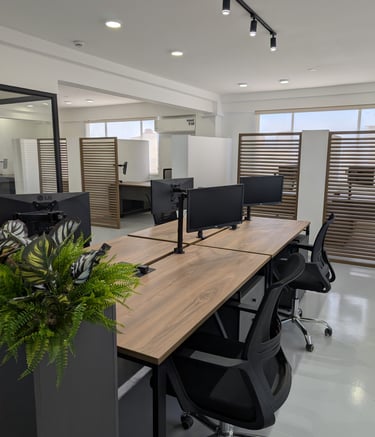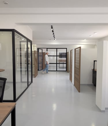 Proyecto de adecuación de oficina diseñado a medida para el cliente, priorizando funcionalidad, confort y una imagen contemporánea. La distribución abierta, el uso de divisiones ligeras y materiales sobrios permiten espacios de trabajo eficientes, flexibles y bien iluminados.