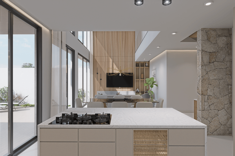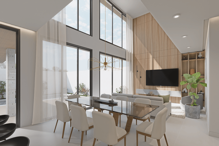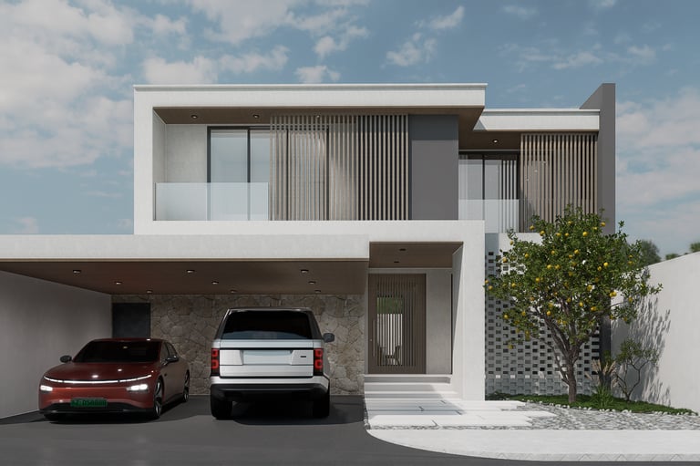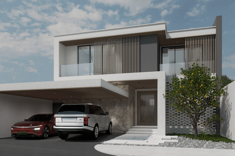 Proyecto de vivienda unifamiliar desarrollado a medida para el cliente, con una propuesta contemporánea que define tanto la arquitectura exterior como el diseño completo de los espacios interiores. Cada ambiente fue pensado para responder a las dinámicas de uso, confort y relación con el entorno.